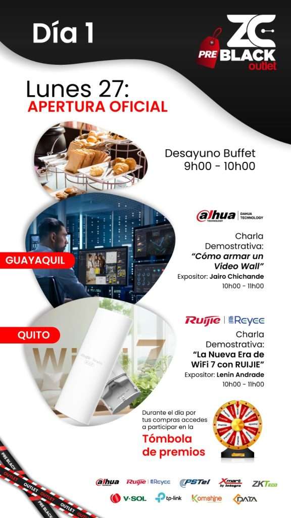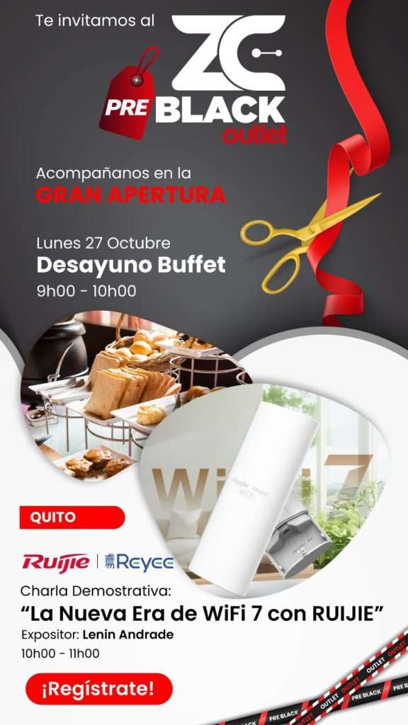 ZC PRE BLACK OUTLET | PRESENCIAL | LENIN ANDRADE | "LA NUEVA ERA DE WIFI 7 CON RUIJIE" | 27/10/2025 | 1 HORA | 09:00 A 10:00 | REGÍSTRATE |