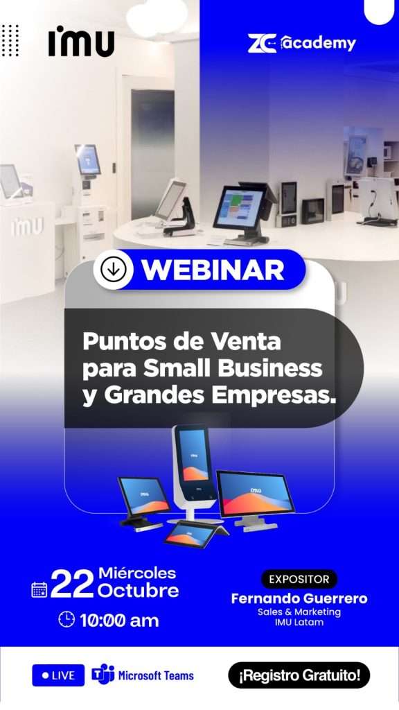 IMU | VIRTUAL | FERNANDO GUERRERO | "PUNTOS DE VENTA PARA SMALL BUSINESS Y GRANDES EMPRESAS." | 22/10/2025 | 1 HORA | 10:00 A 11:00 | REGÍSTRATE |