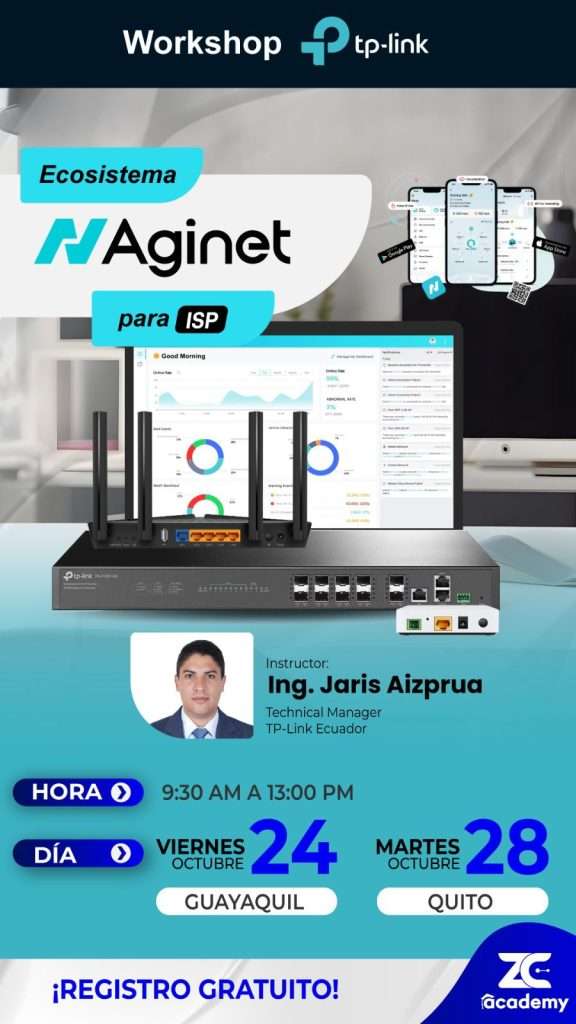 TP-LINK | PRESENCIAL | JARIS AIZPRUA | "WORKSHOP ECOSISTEMA AGINET PARA ISP" | 24/10/2025 | 4 HORA | 09:30 A 13:00 | REGÍSTRATE |