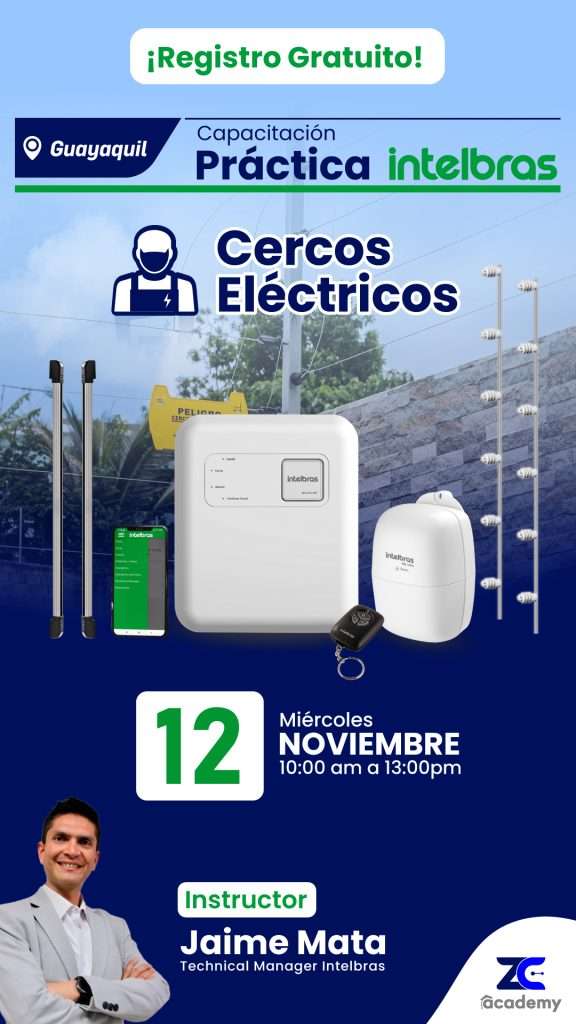 | INTELBRAS | GUAYAQUIL PRESENCIAL | JAIME MATA | "CERCOS ELECTRICOS" | 12/11/2025 | 3 HORA | 10:00 A 13:00 | REGÍSTRATE |