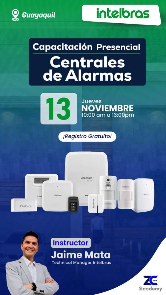 | INTELBRAS | GUAYAQUIL PRESENCIAL | JAIME MATA | "ALARMAS MONITOREADAS" | 13/11/2025 | 3 HORA | 10:00 A 13:00 | REGÍSTRATE |
