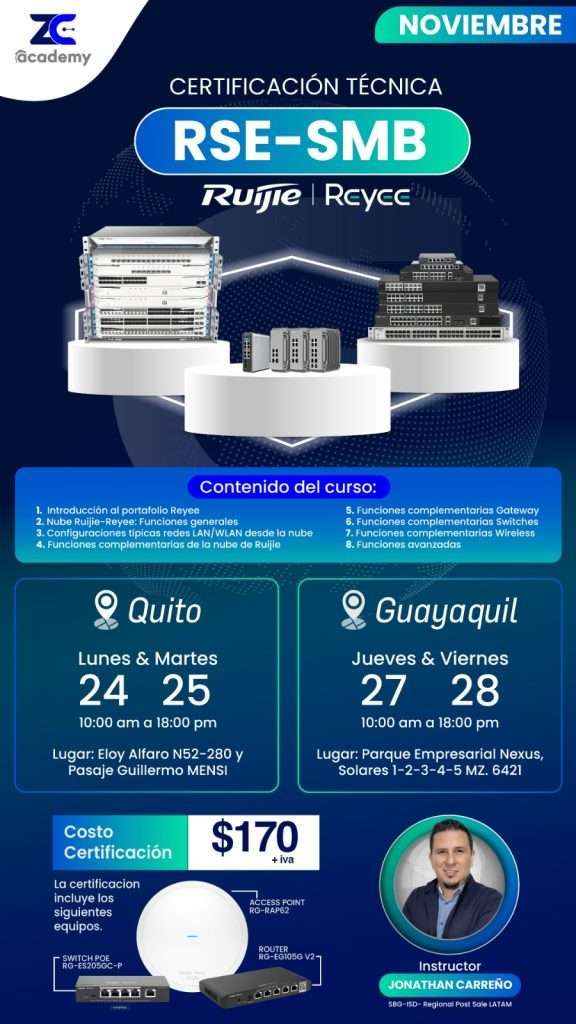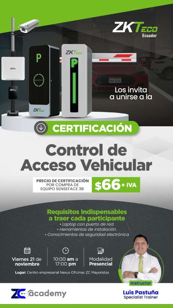 | ZKTECO | VIRTUAL | LUIS PASTUÑA | "RESOLUCIÓN DE CASOS BÁSICOS DE SOPORTE EN ZKTECO " | 18/11/2025 | 2 HORA | 10:00 A 12:00 | REGÍSTRATE |
